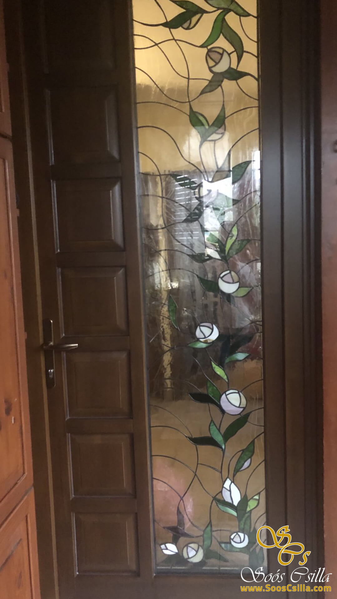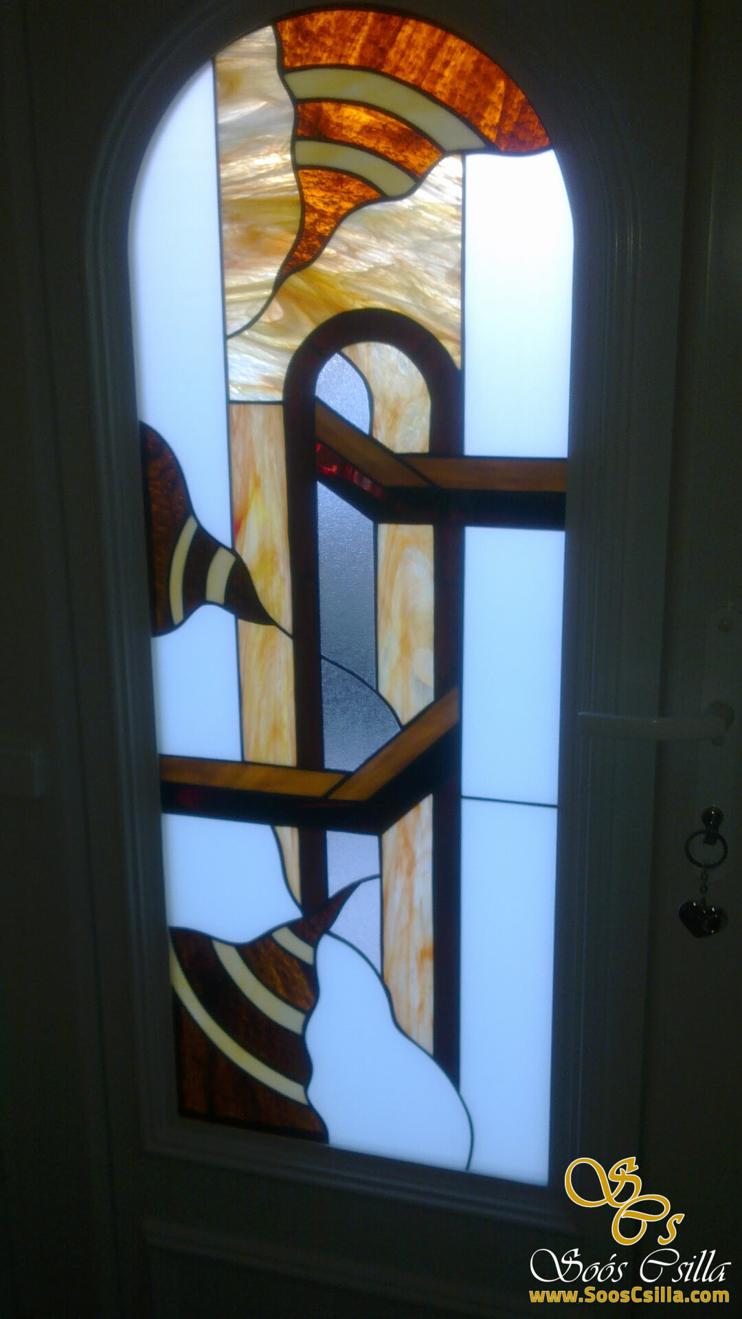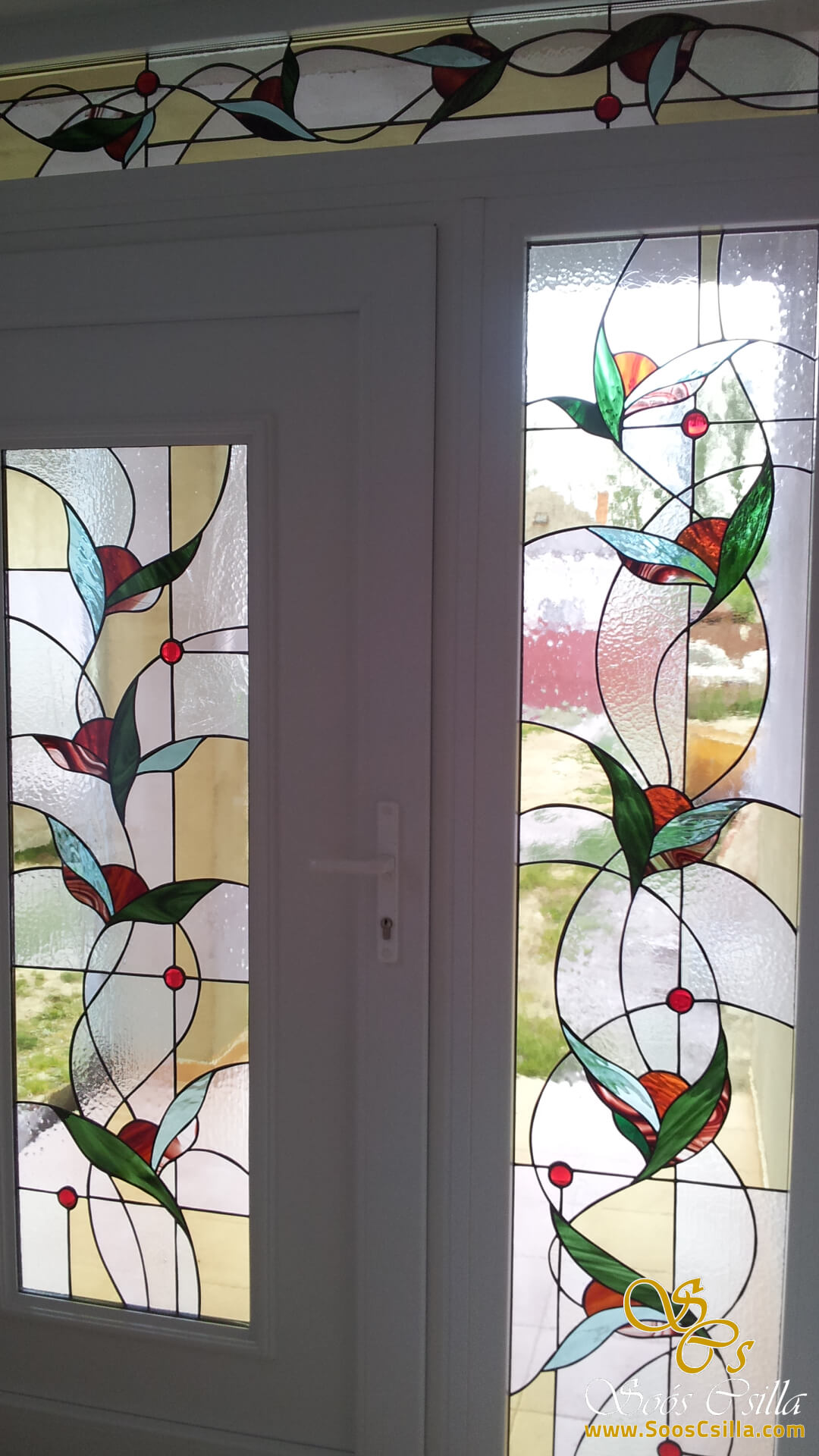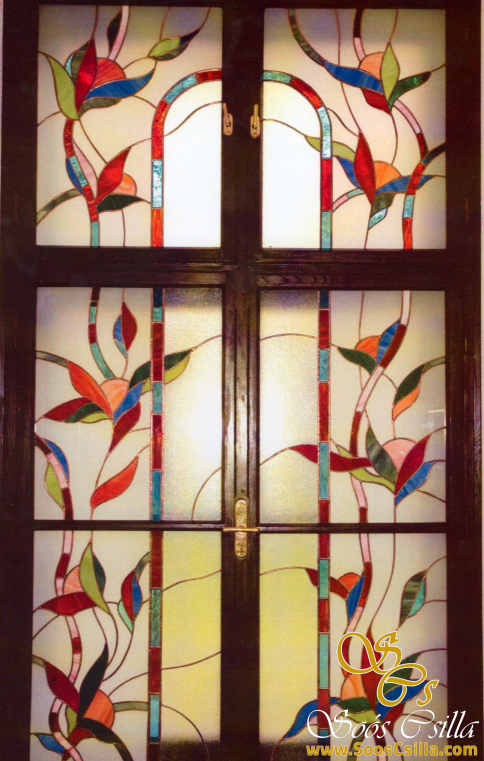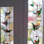 The pictures show a mixture of my stained glass works for windows and door inserts. It is interesting in the pictures that no two of my works are the same or similar. Everything I do is unique and I am always inspired by the location when creating the form and the stained glass pattern.