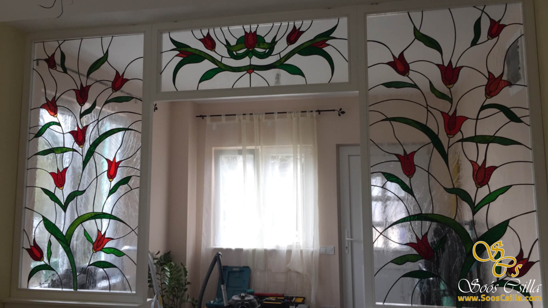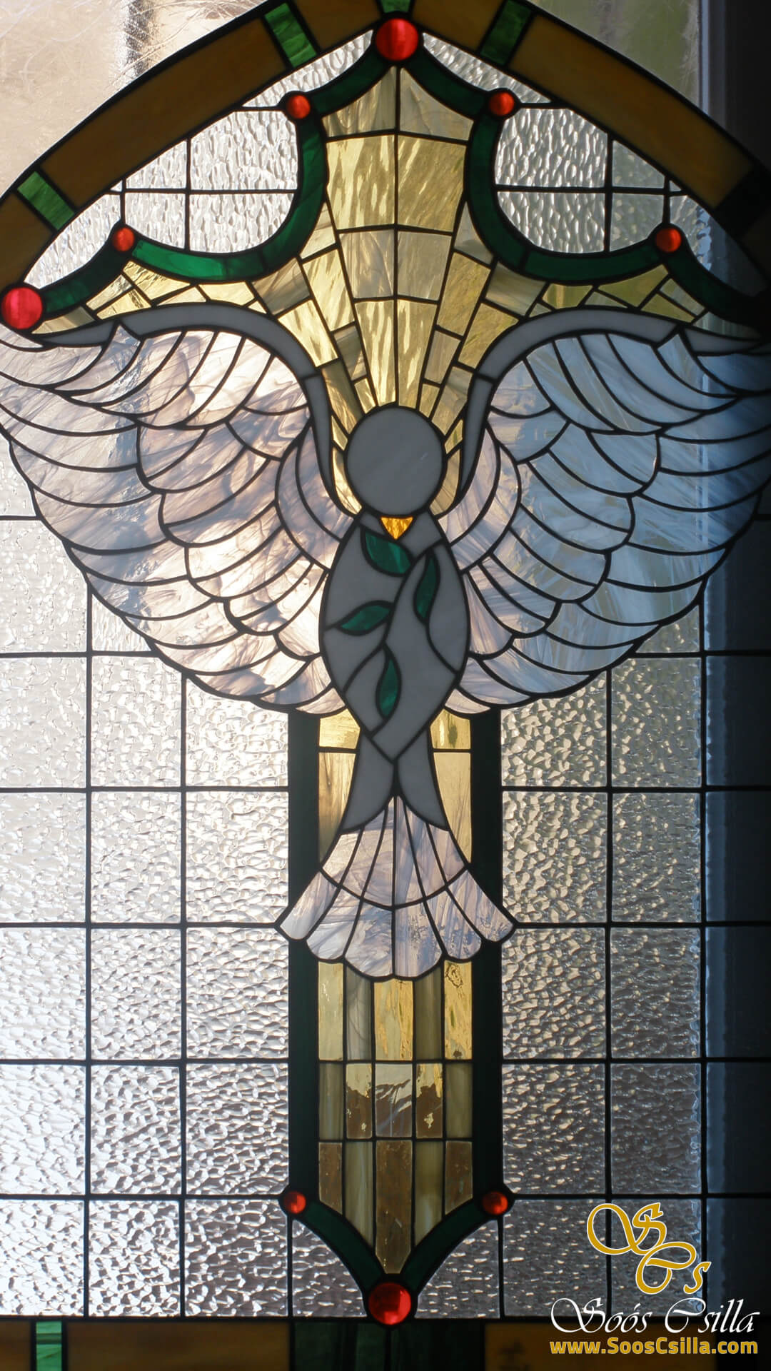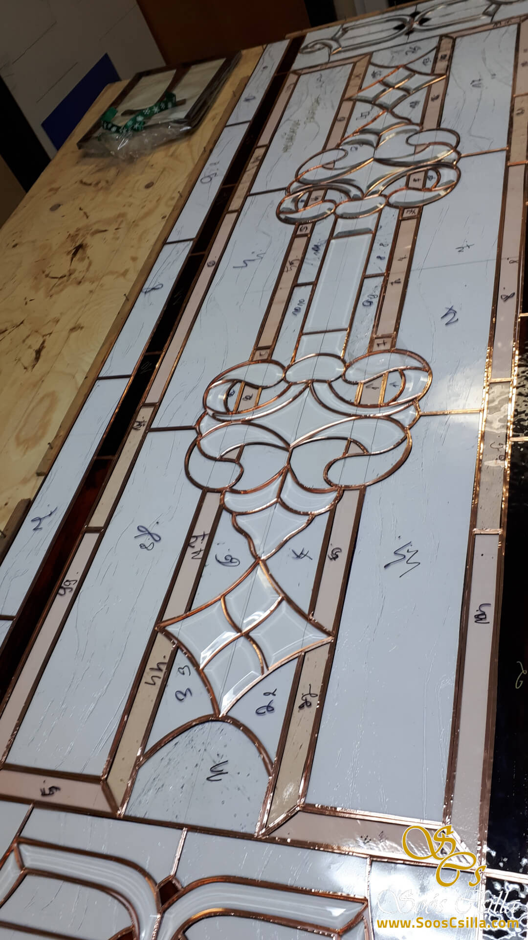 The pictures show a mixture of my stained glass works for windows and door inserts. It is interesting in the pictures that no two of my works are the same or similar. Everything I do is unique and I am always inspired by the location when creating the form and the stained glass pattern.