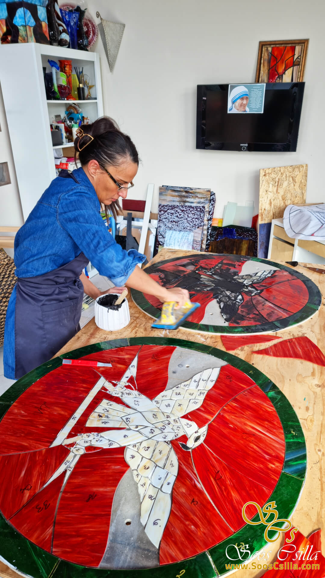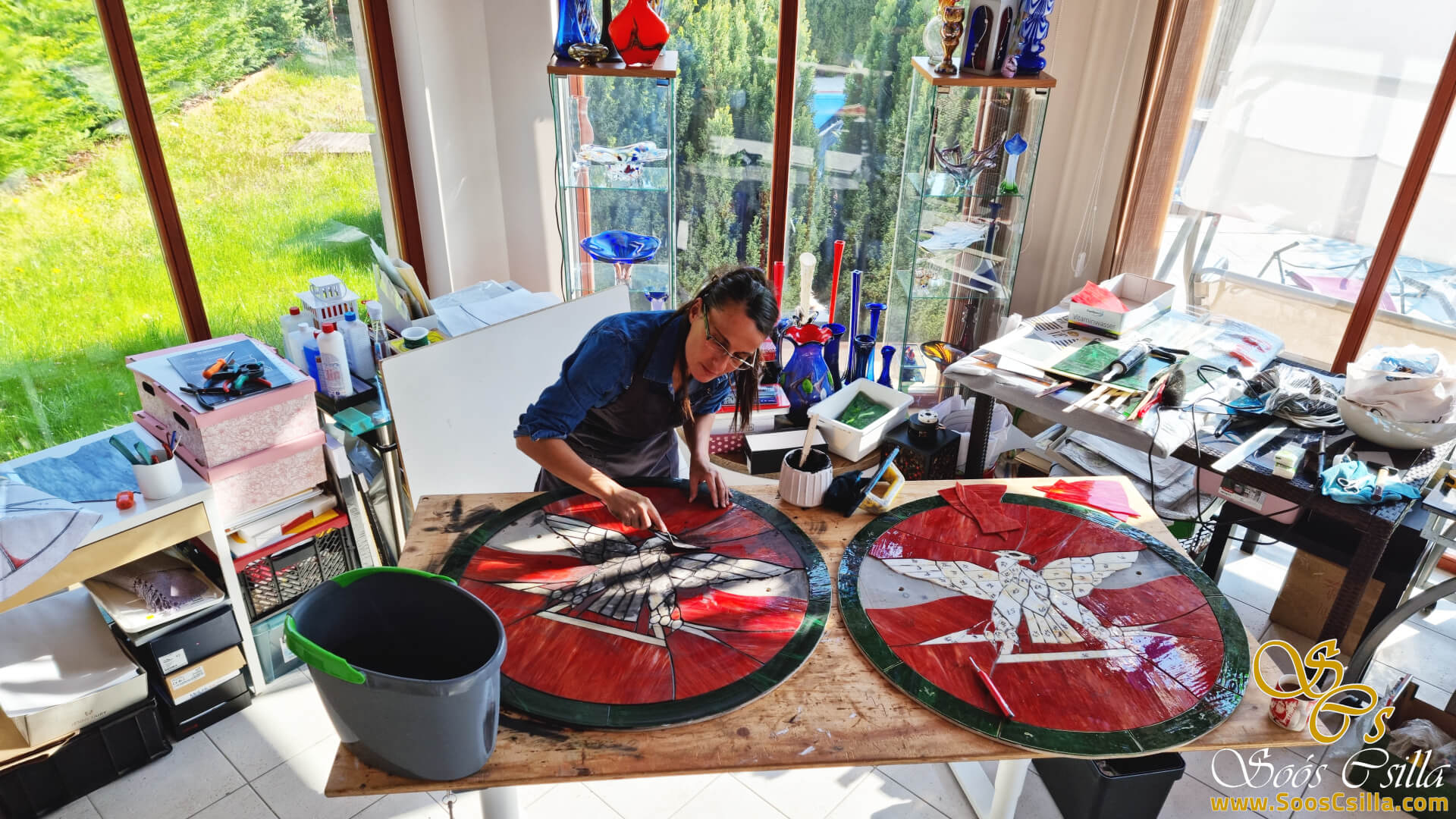 Outdoor facade made of mosaic glass by Stained Glass Artist, Csilla Soós.