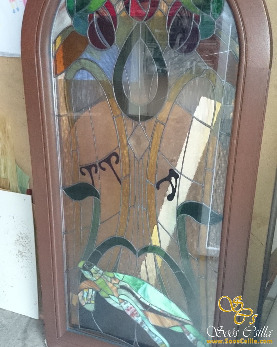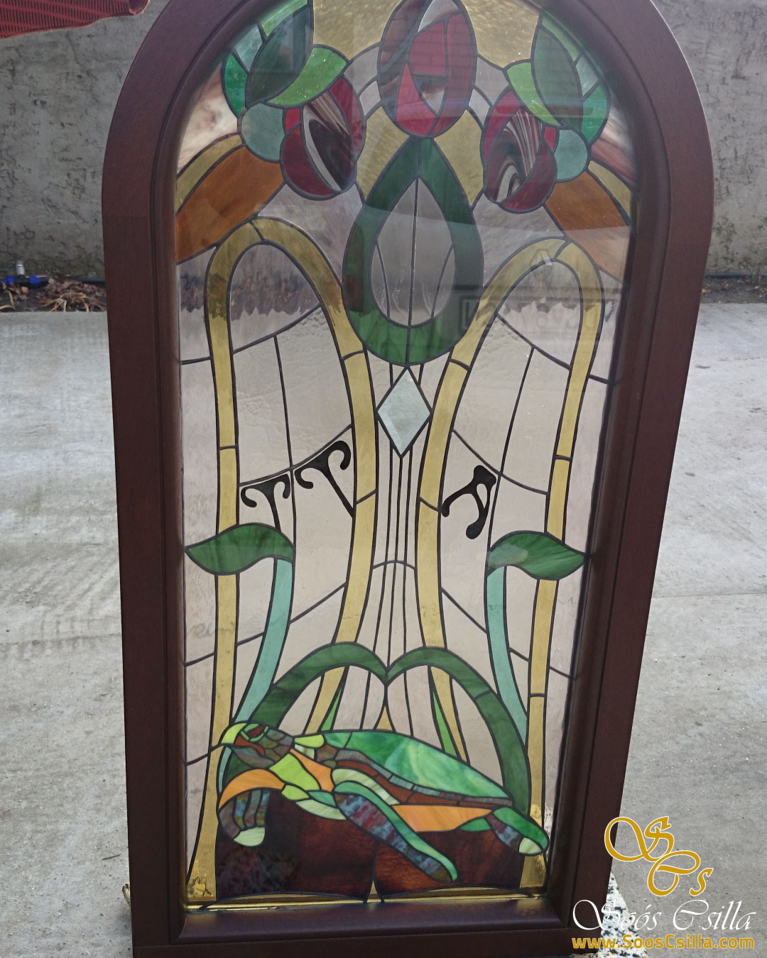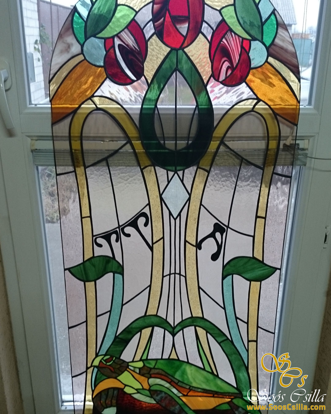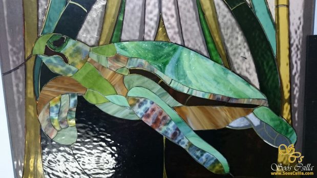 Stained Glass Art Nouveau Window with Turtle Motif by Stained Glass Artist, Csilla Soós.
