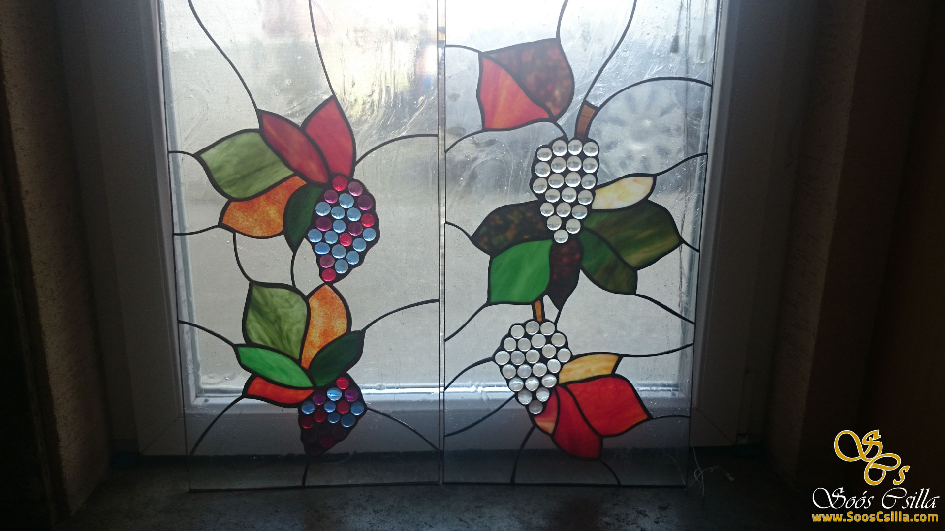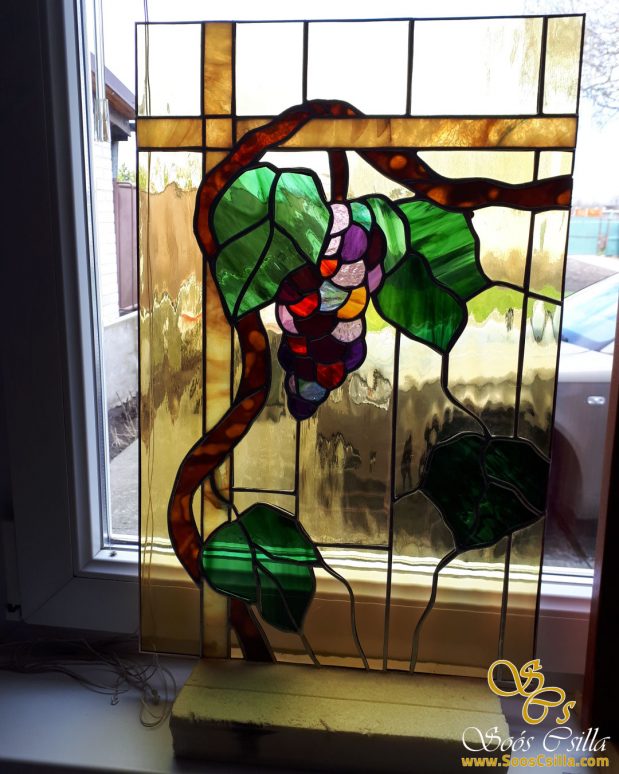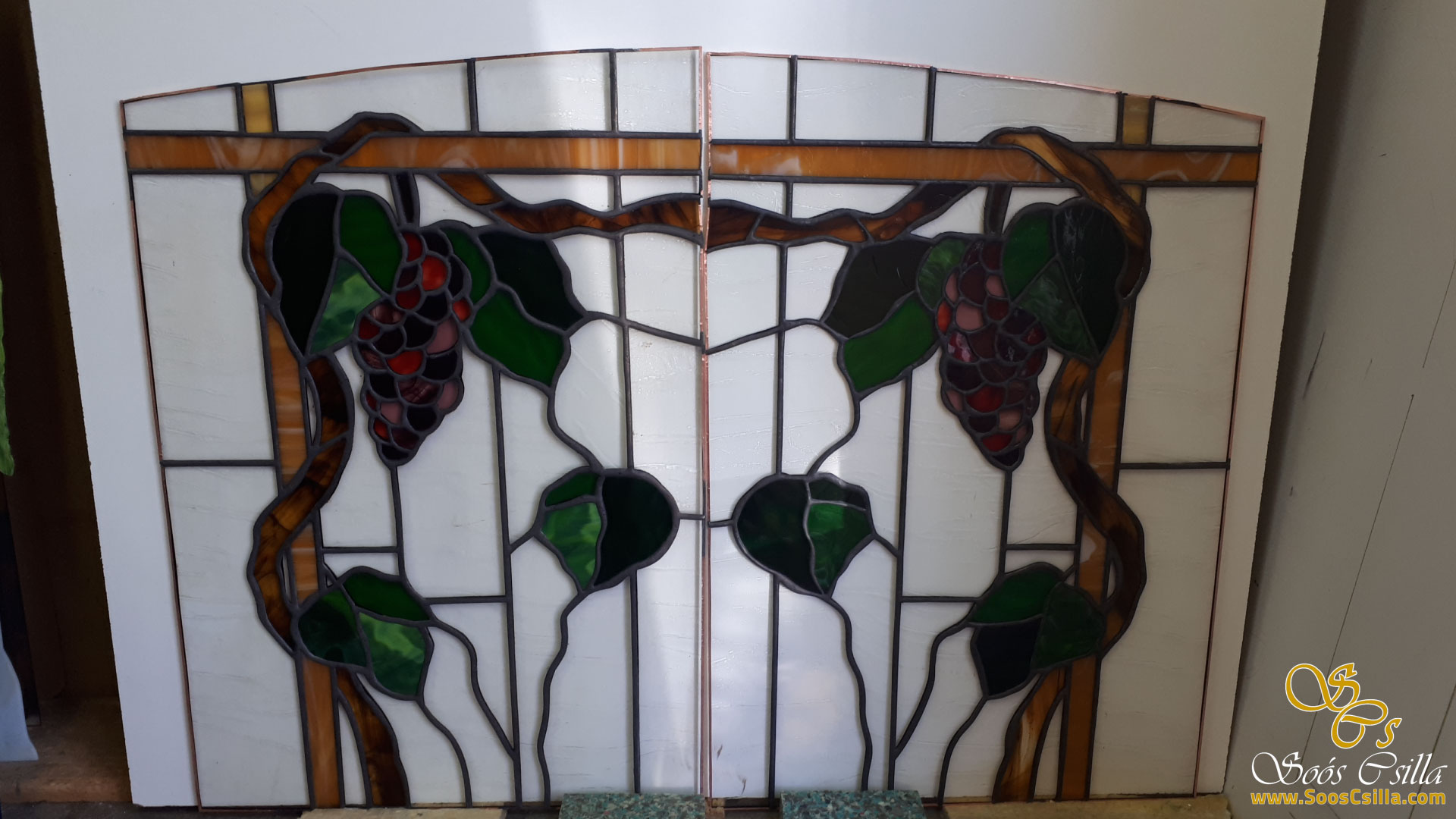 Stained Glass Door Inserts With Grapes In A Wine House By Stained Glass Artist, Csilla Soós.