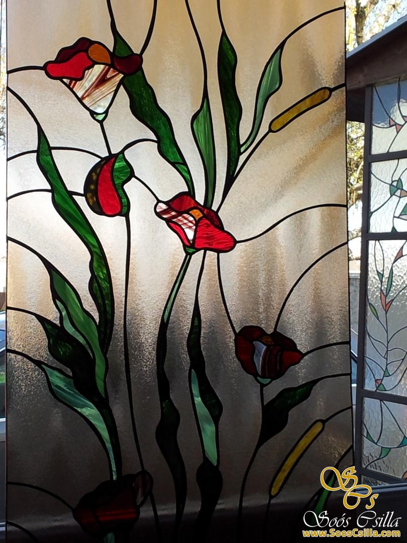 Coloured Stained Glass Flower Window Inlay with Summer Flowers by Stained Glass artist, Csilla Soós.