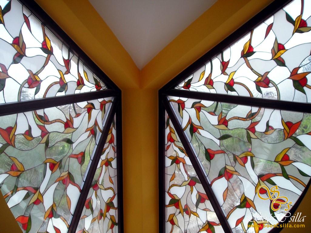 Coloured Stained Glass Flower Windows with Small Flower Decorations by Stained Glass artist, Csilla Soós.