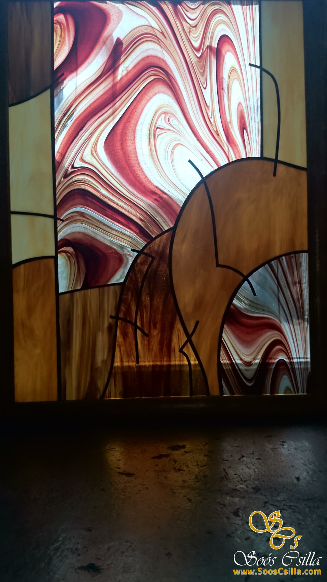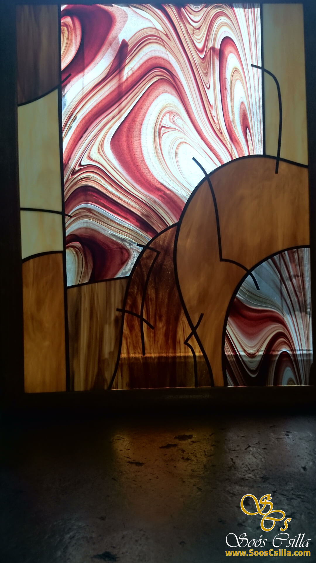 Stained Glass Wall Picture (Brown And Crimson) by Stained Glass Artist, Csilla Soós.