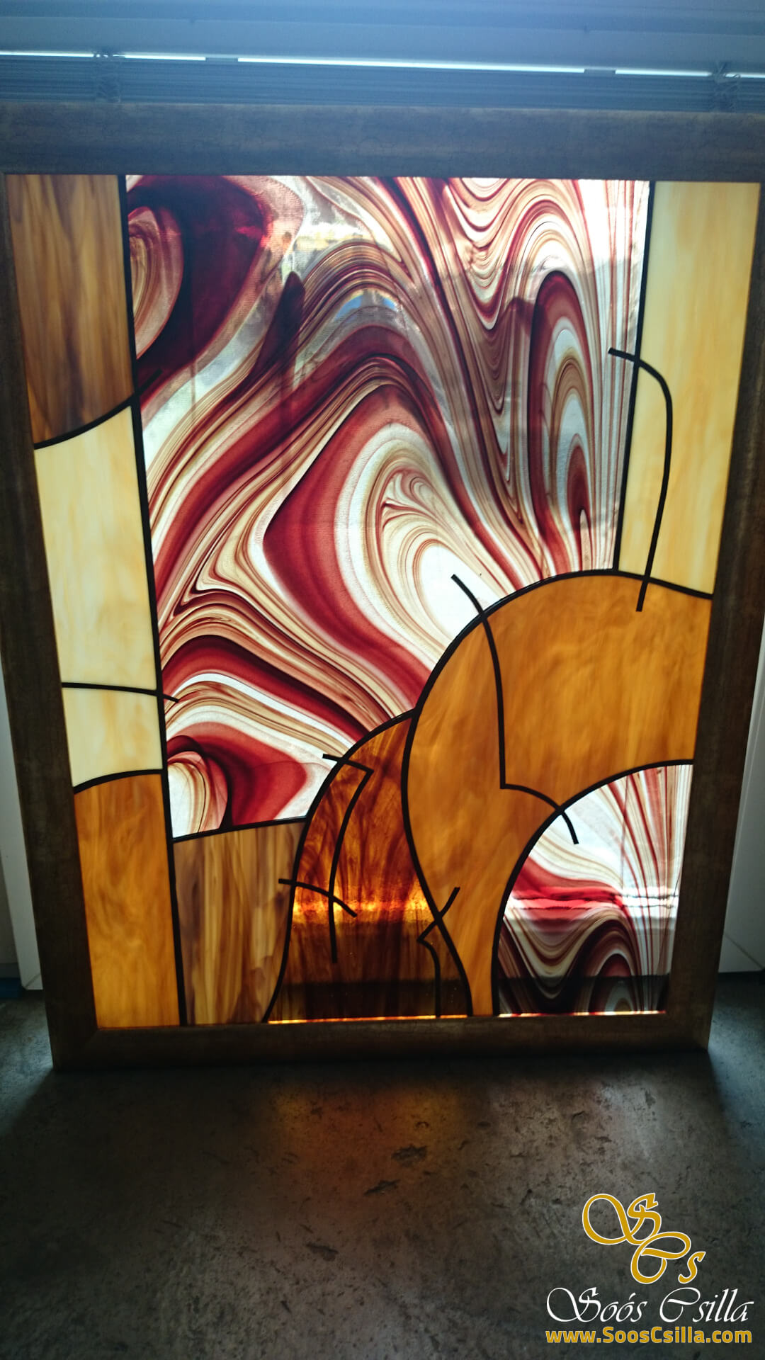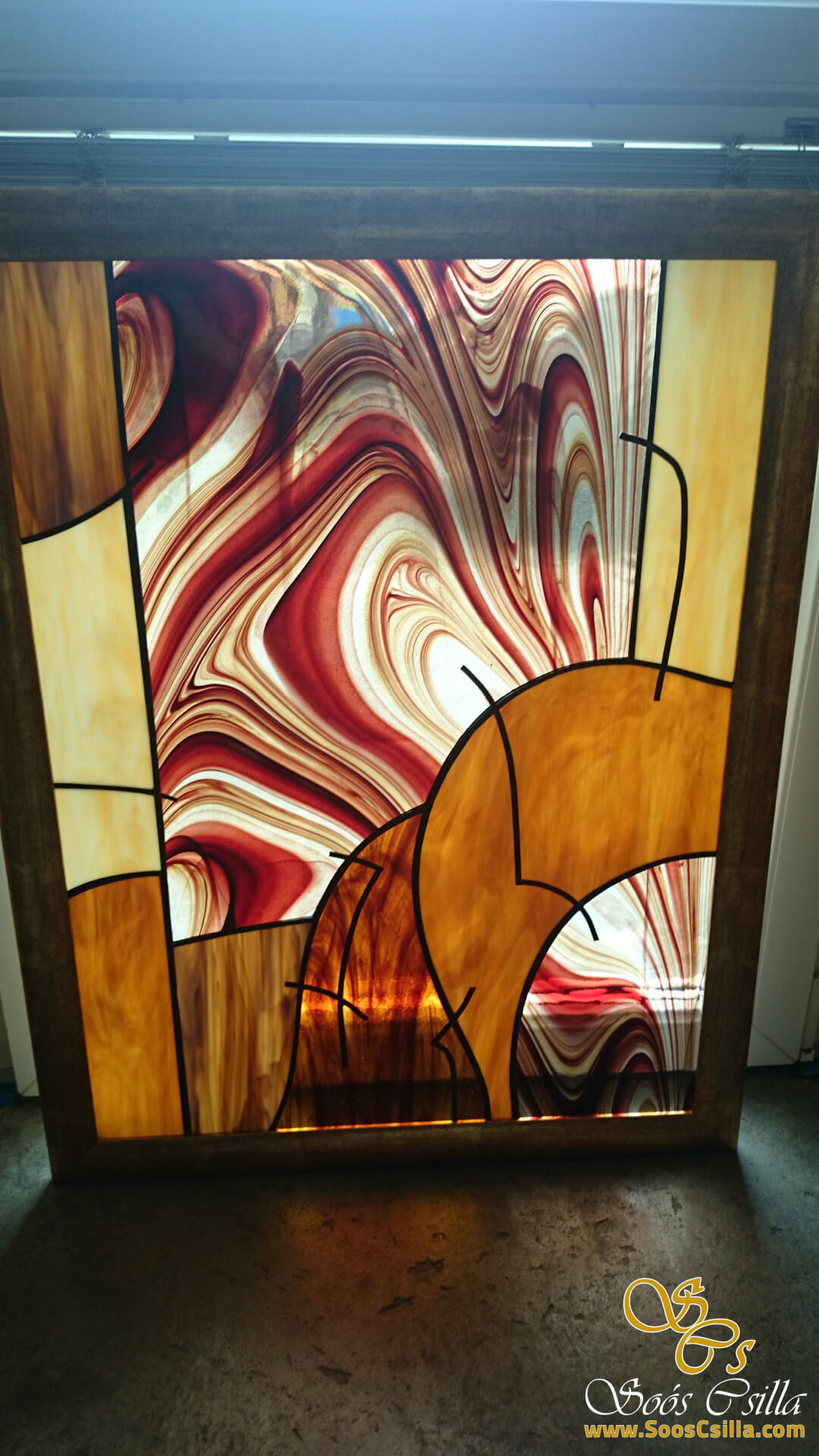 This stained glass work is a modern picture, which the customer ordered to face the fireplace in his living room, on a backlit structure. Stained glass can not only function as a window, but also make our home beautiful even when hung on a white wall.