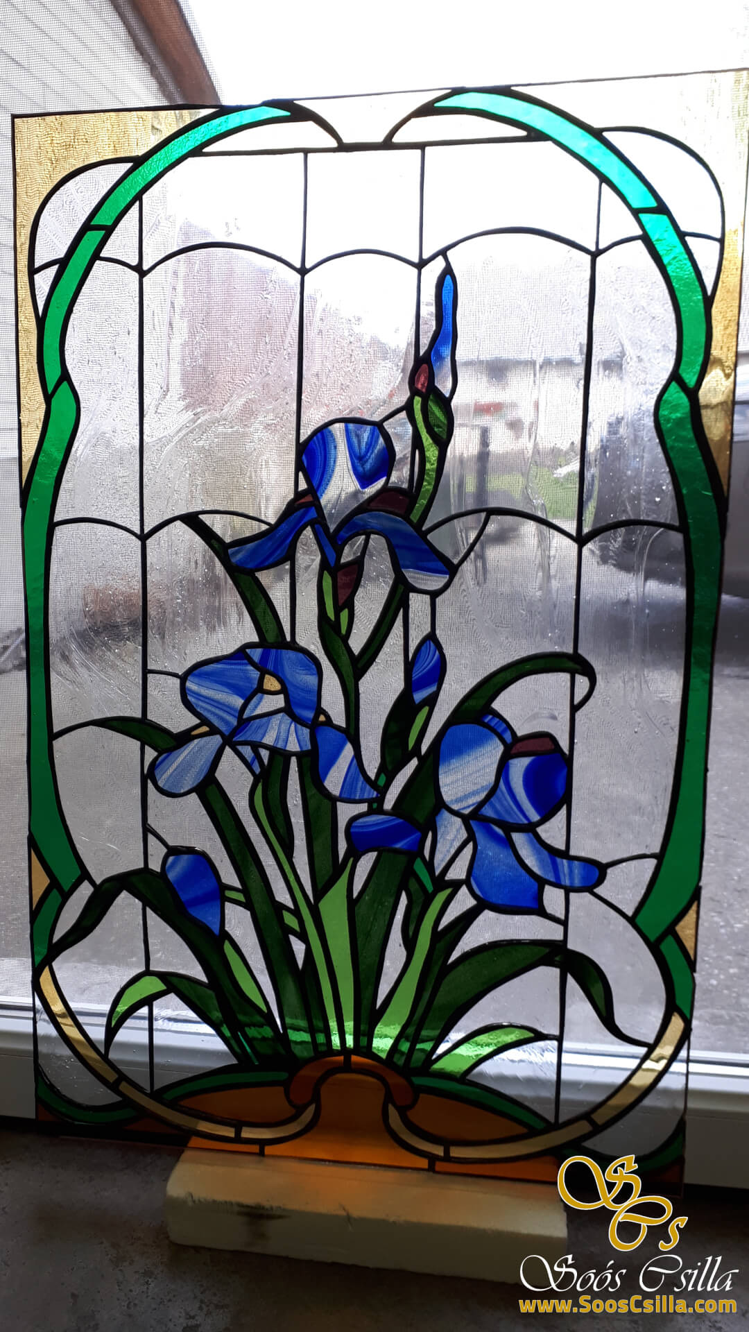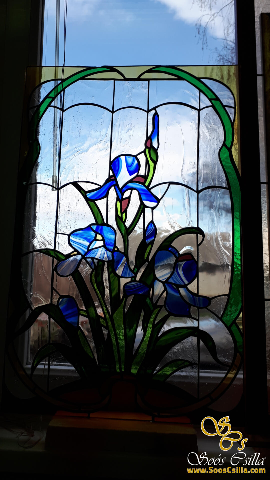 Stained Glass Window: Blue Flowers – Csilla Soós.