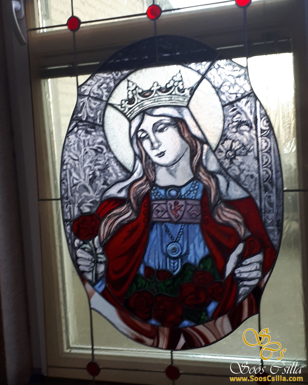 Stained Glass Window With St. Elizabeth at the Taksony Restaurant by Stained Glass Artist, Csilla Soós.